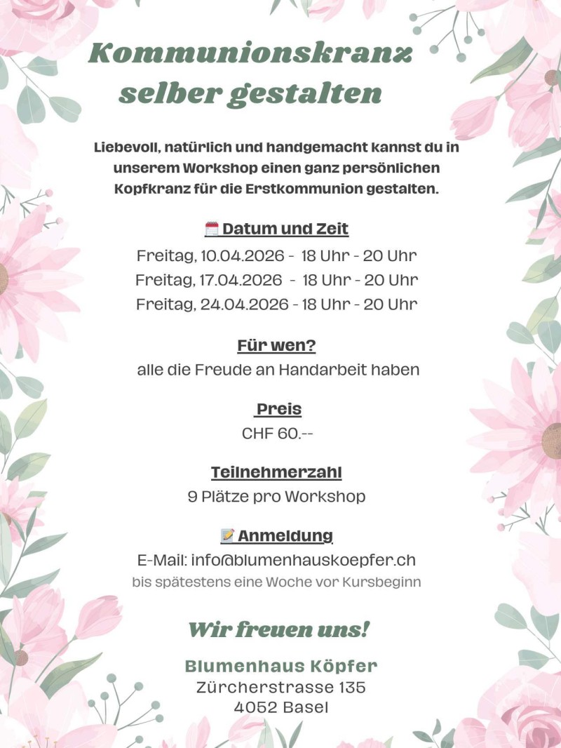 Anmeldung via Mail an info@blumenhauskoepfer.ch.
