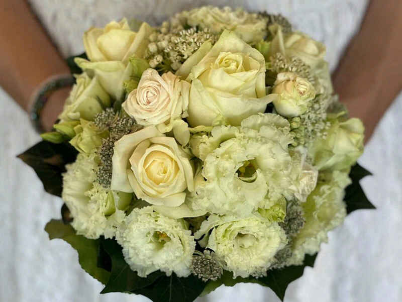 Brautstrauss, Anstecker, Tischdekoration, Kirchenschmuck, Haarschmuck, Ringkissen, Blumen für die Trauung, Blütenbögen & Autodekoration